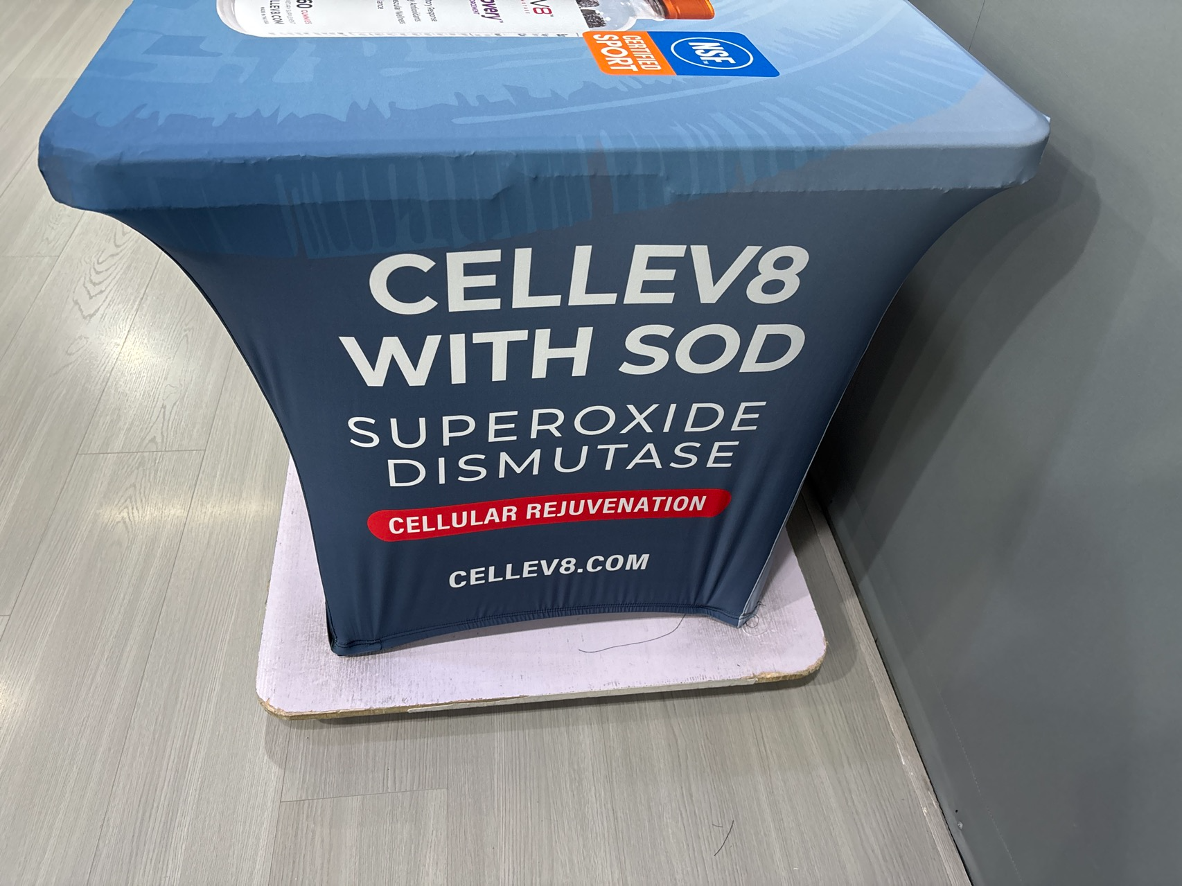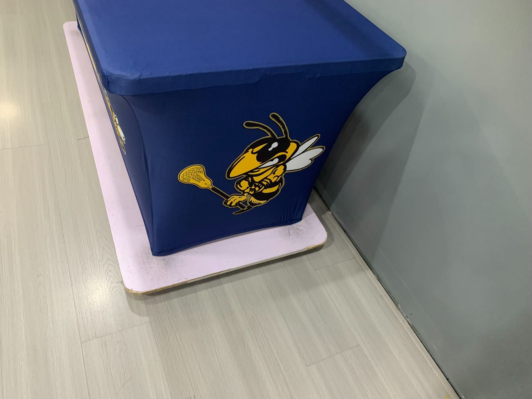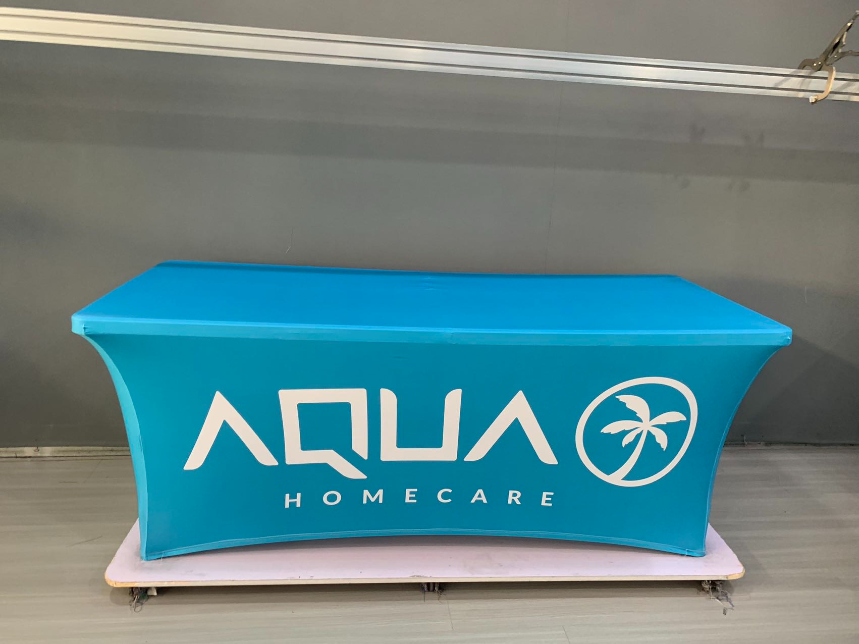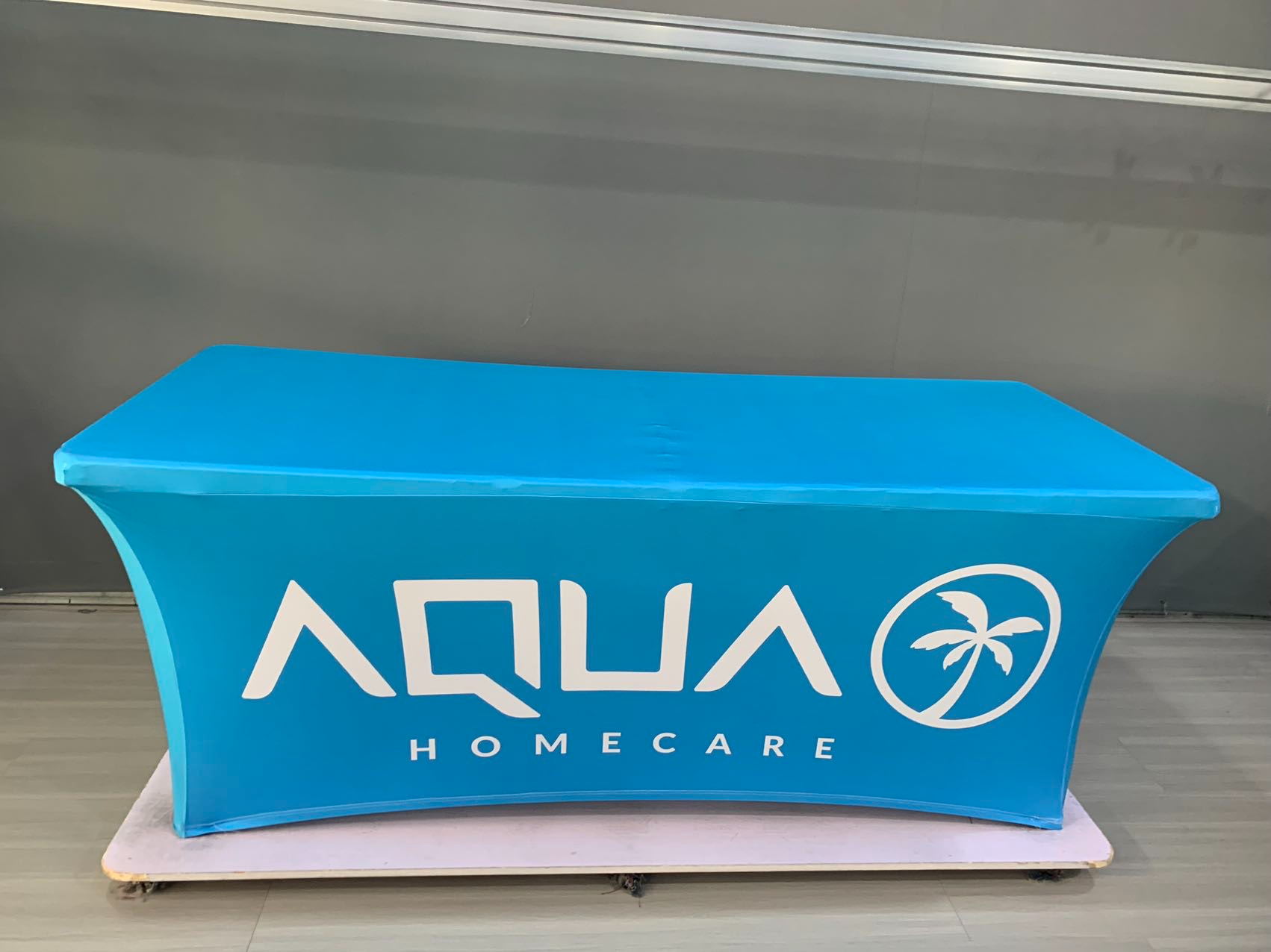 Our custom table covers are made from 180 gram polyester and come in 6 and 8 foot versions and can be 3 sided or 4 sided.  We tell people if you are using your table cover in the summer, outside, then maybe the 3 sided version would be perfect.  If you want to hide stuff under your table, no problem, get that 4 sided version.  All of our table covers are wrinkle resistent and flame retardent for safety standards.