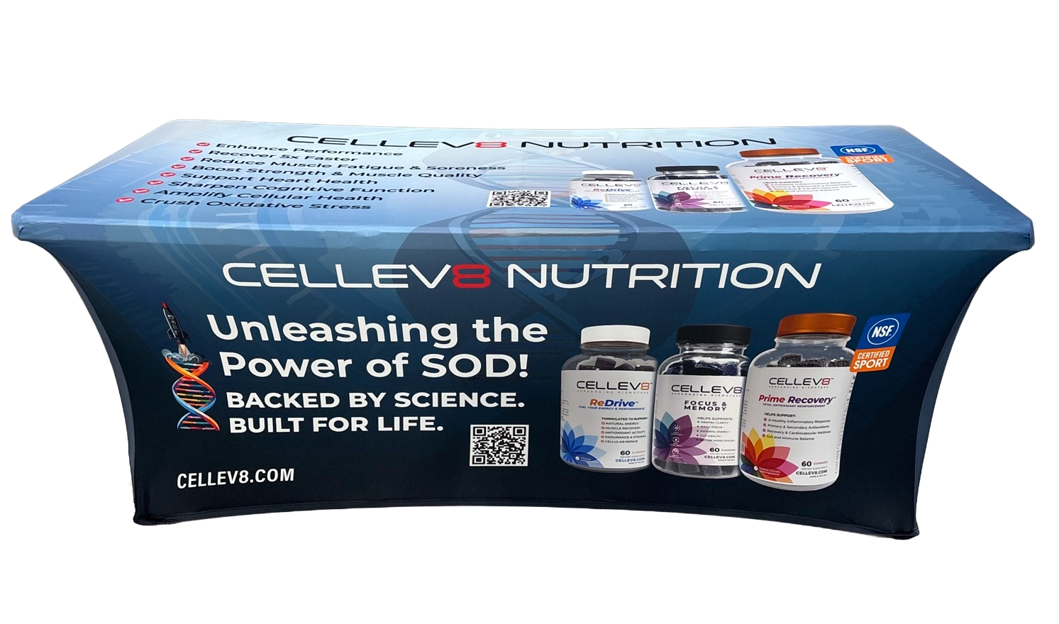 Running a campaign is hard work but you want to be able to get your name out there at all the events in which you participate.  If your event can’t accommodate a custom pop-up tent, think about a custom stretch table cover would be a new and modern way to get your message out.  It’s a beautiful, yet completely useful, way of getting your name out there.  Having a meet and greet or community event?  Perfect.  Use bright colors to convey your message and logo.  Just need people to get out and register to vote?  Use a table cover at every single event!  Available as both 3 sided and 4 sided options. Telling your story through a tablecloth that combines engaging graphics and text. Use design to  incorporate interactive QR codes that lead attendees to immersive content.  What you stand for and how people can get involved.