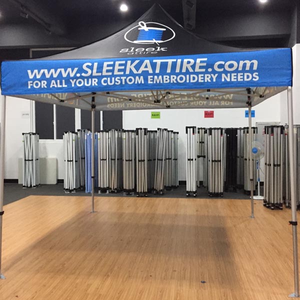 - 10′ x 10′ dye sublimated canopy top