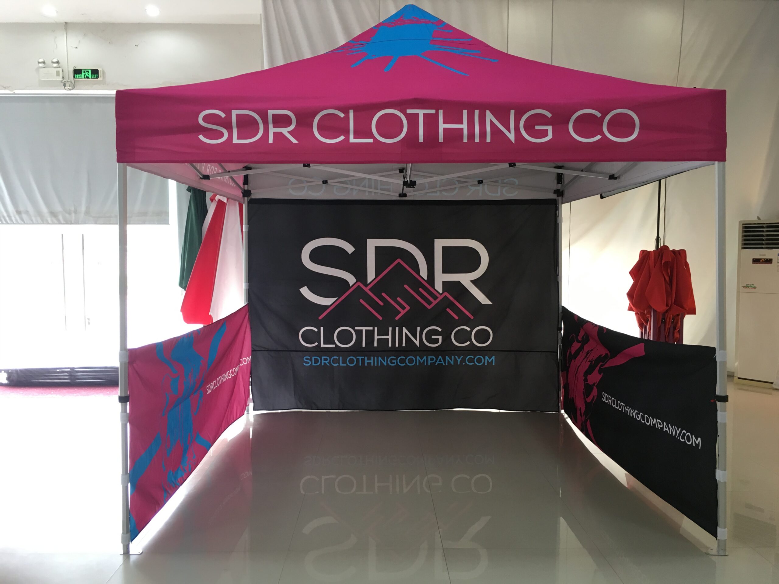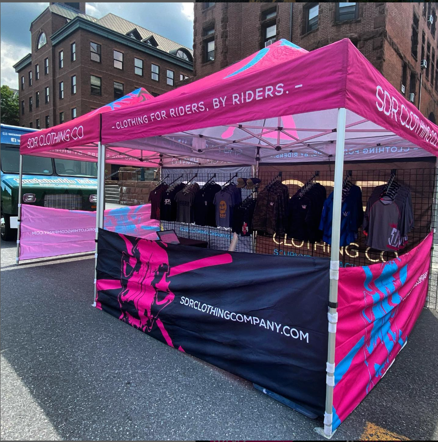 Custom Clothing & Boutique Canopy Tents are just what every start-up clothing company needs! Are you thinking of creating your own Pop-up Shop? Draw in customers with an exciting design. Plenty of room to add tables to display your gorgeous creations. Perfect for getting seen at trade shows or new designer events. Use a bright, colorful tent to attract your customers to the best the Market has to offer. Branded with your logo, your contact info will be easily accesible to hundreds of people at one time. Not to mention its a great place to have a conversation in comfort and shelter from the elements.