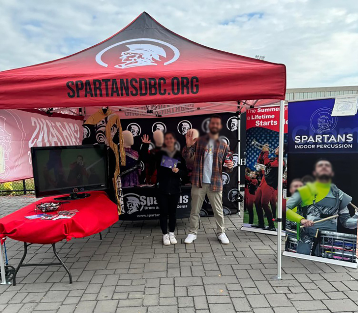 Why Drum and Bugle Corps – aka DCI Drum Corps?  Because why not!  It’s the best summer(s) of your life!  You know how crucial it will be to have a custom pop up merch tent during finals in Indy.  You know the summers are VERY hot starting with move-ins!  Show your pride and your merch all year with a custom tent.  The uses for this tent really are endless.  Not to mention its a great place to have meetings in comfort and shelter from the elements.  We are sure the entire band will be proud to meet in a tent made for them.