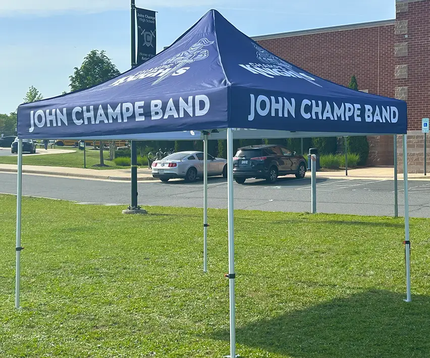 If you are a band parent, then you know.  You know how crucial it will be to have a custom pop up tent to show off your marching band school pride during competitions.  You know how hot it is and how much the players sweat in those uniforms. You know the middle of summer band camp is VERY hot!  Build some serious parent or booster cred by investing in a tent for your high school band.  The uses for this tent really are endless.  Selling tickets at a home or away game, being the food tent during games and camp, tag day coordination tent.  Not to mention its a great place to have a team meeting in comfort and shelter from the elements.  We are sure the entire band will be proud to meet in a tent made for them.