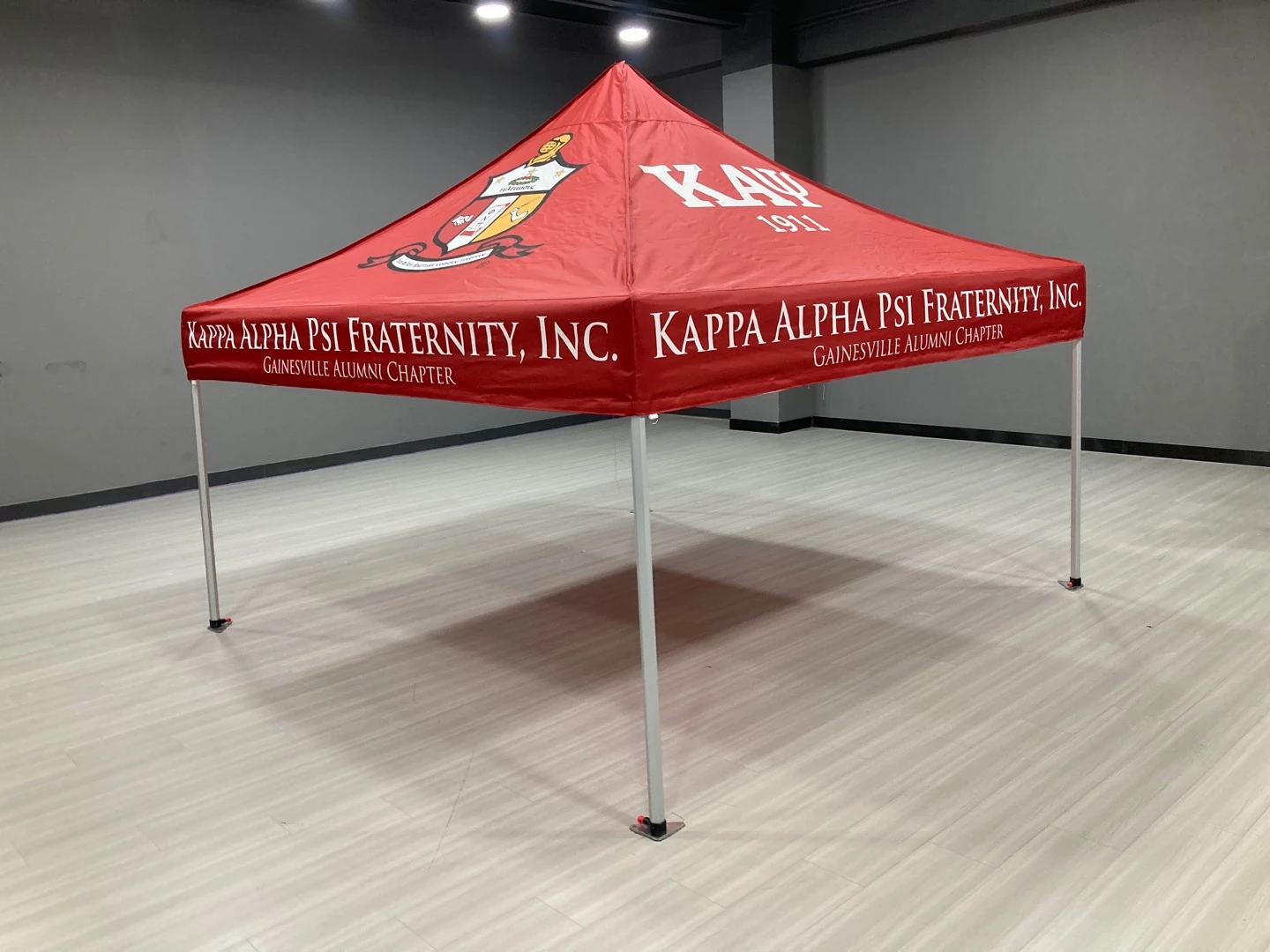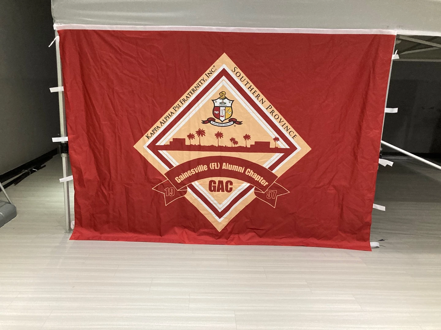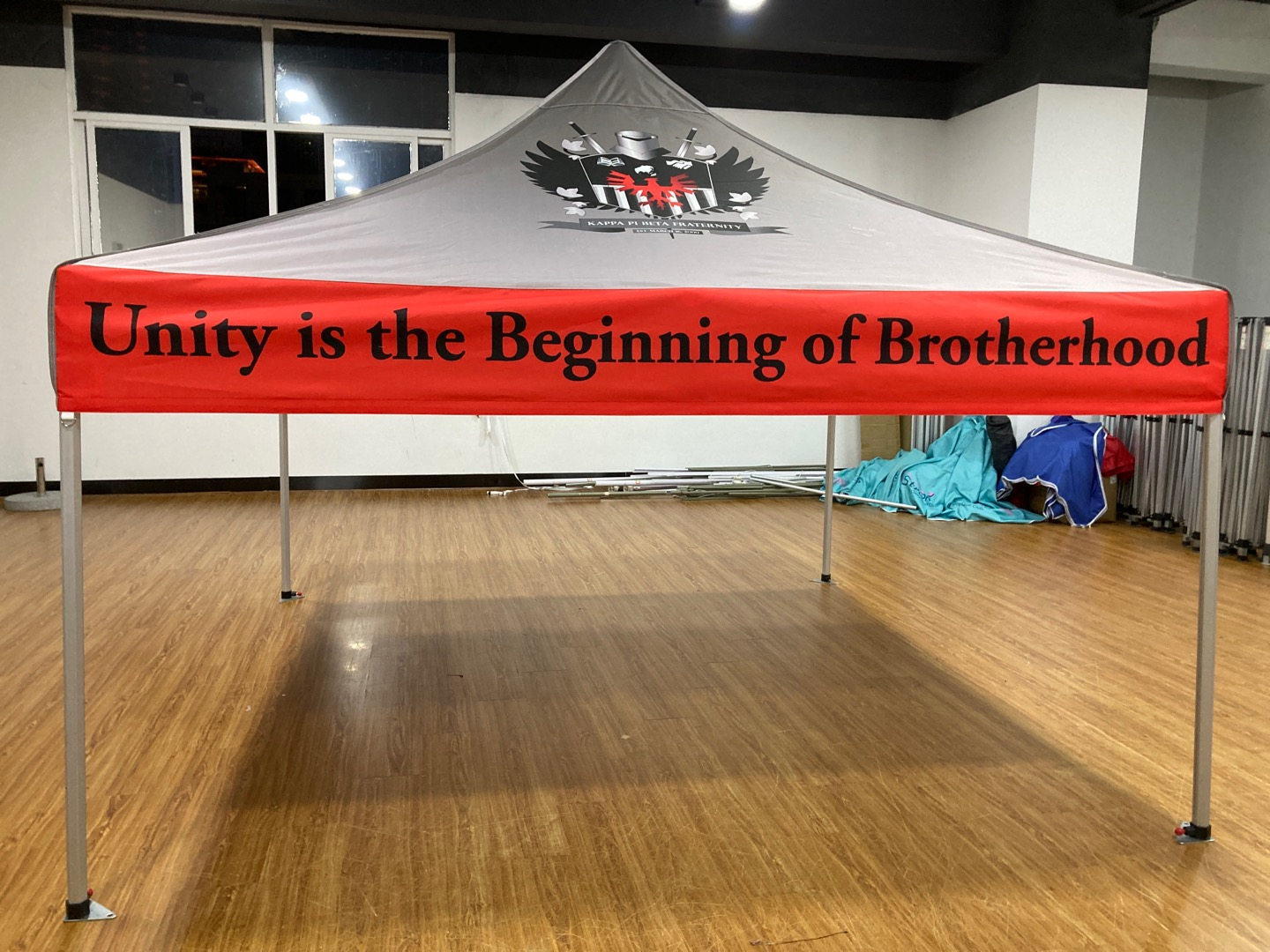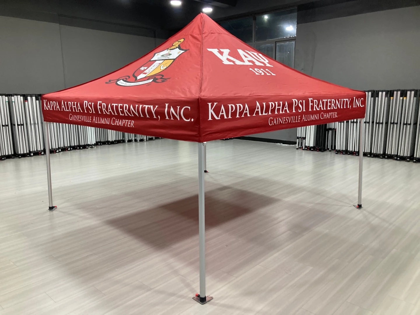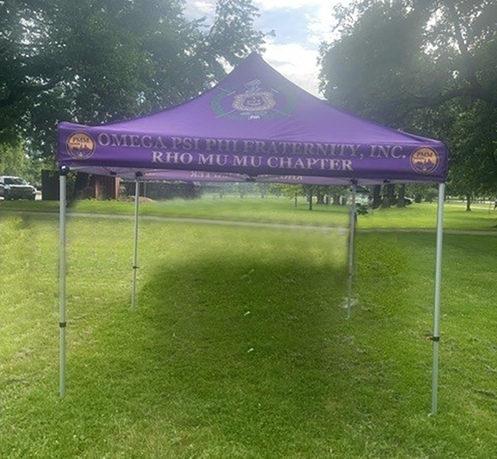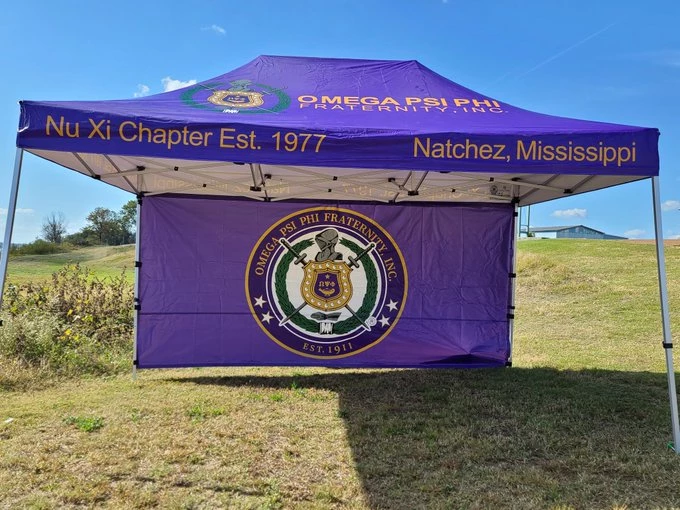 Want to have the most fun display at any college or alumni event?  Purchasing a custom fraternity tent will help with the promotion of the traditional Asian values of respect and discipline!  You don’t have to stick with the design you see here.  We can customize your design any way you would like – colors, names, logos etc. – the sky is the limit.  Going to a tailgate, recruiting new members during rushes, and promoting your organization will be so much easier with a branded custom tent.  Your brothers and sisters will really appreciate the shady place to sit during the fun.  What a great opportunity to show off your brand and really let potential members get to know you.  They will see that you care about a professional image and the details that are crucial!  Our custom tents give you just that extra bit of real estate to list your services or even add contact information in plain sight. Our tents can be easily set up and transported to various locations like the aforementioned and also corporate events or picnics, trade shows and any other event.  Not to mention it’s a great place to have a conversation in comfort and shelter from the elements.  We can also customize vinyl banners, Step and Repeats and custom table cloths for tailgates and other events.