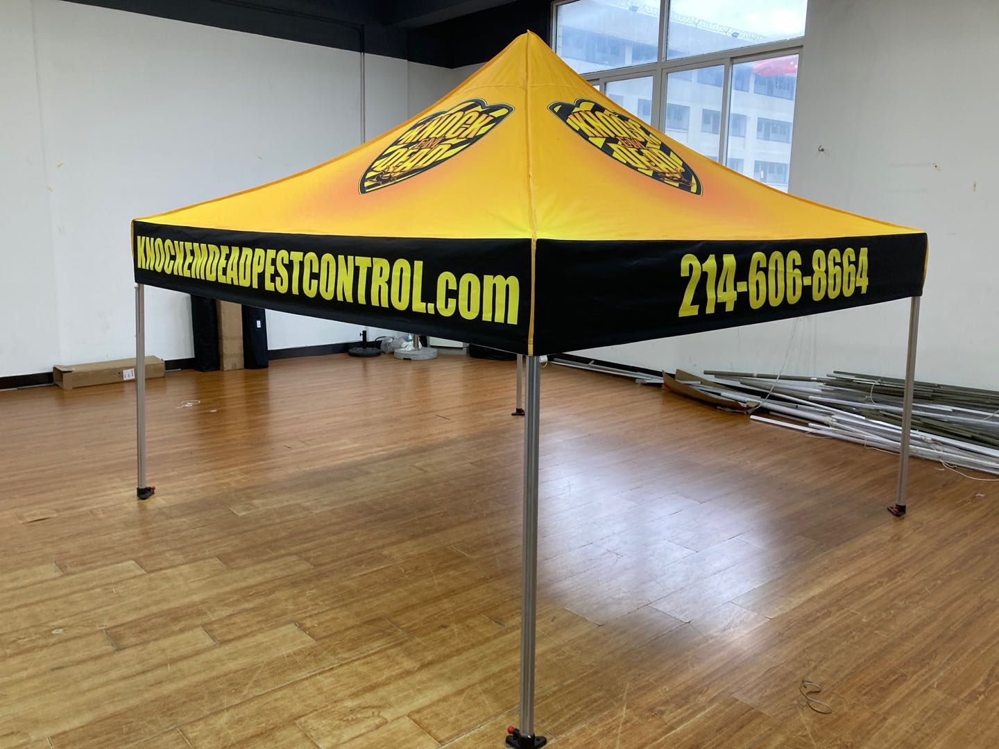 Pest control companies use all sorts of tents.  But your custom pest control canopy tent with be the best by far!  Pests are everywhere and your business is crucial to homeowners.  When you show up to a job, a trade show or a community event, your customers will see that you care about a professional image and the details that are crucial in all businesses!  Our custom tents give you just that extra bit of real estate to list your services or even add contact information in plain sight.  Not to mention it’s a great place to have take a break during a big job in comfort and shelter from the elements.