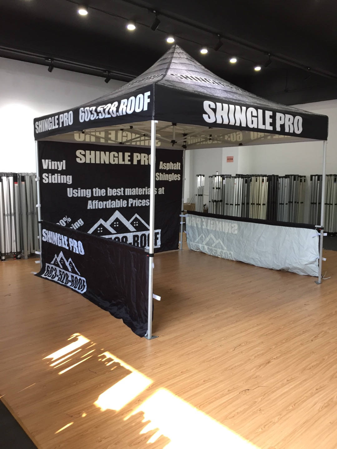 The most crucial part of any home build – next to a foundation – is your roof. When you show up to a job and put your Custom Roofing Canopy Tent into action your customers will see that you care about a professional image and the details that are crucial in all businesses! Not to mention, it’s a great place to have take a break during a big job in comfort and shelter from the elements. You are showing that you care not just about the details but you care about your employees. It’s hot up on those roofs! Our custom tents give you just that extra bit of real estate to list your services or even add contact information in plain sight.