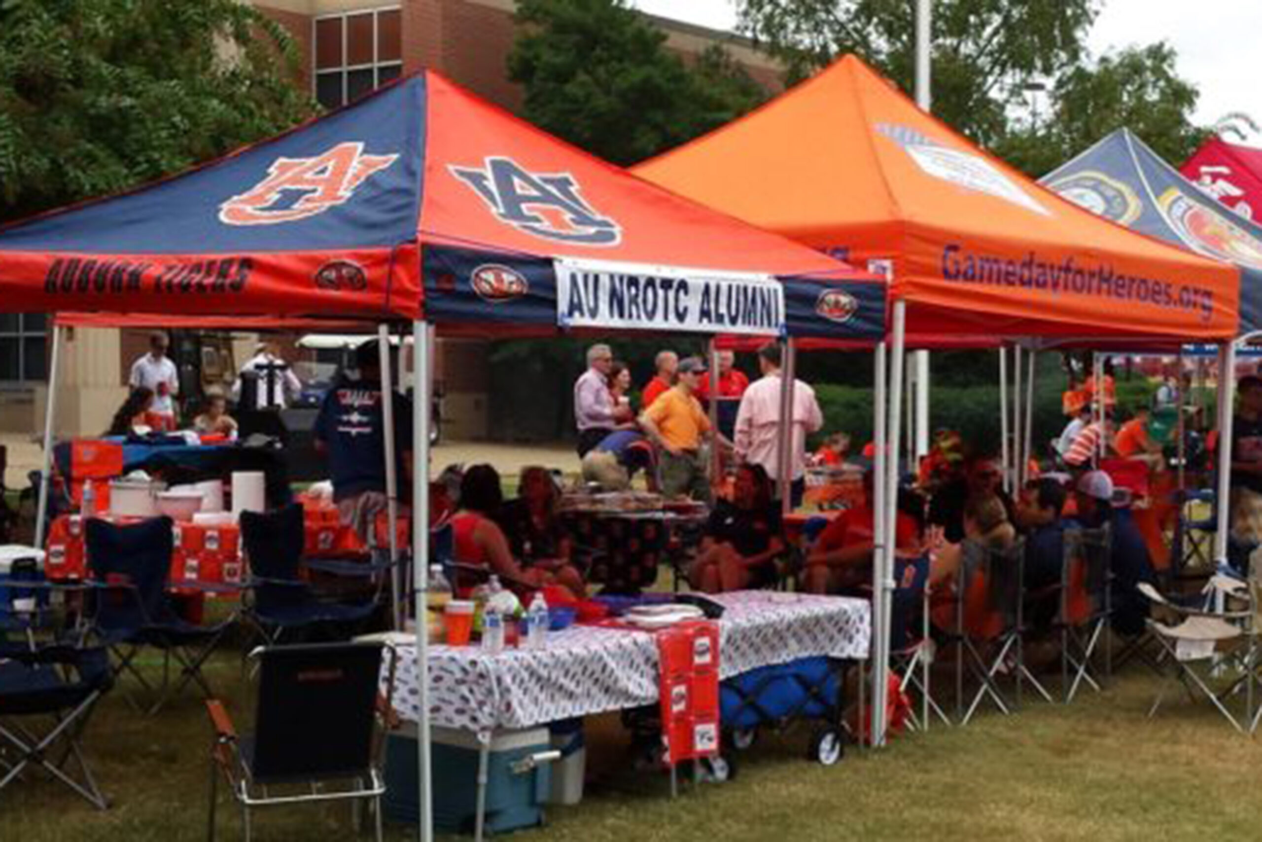 Want to have the most fun display at any college, university or alumni event? Are you ready for some football, (or baseball, or whatever)? LET’S TAILGATE!! We can customize your design any way you would like – colors, names, logos etc. – the sky is the limit and we will print anything you give us. Going to a game with your custom tailgate tent canopy will help you standout in the crowd of plain white tents! What a great opportunity to show off your team spirit and share your food and libations! Our custom sports themed tailgate tents can be easily set up and transported to various locations like the aforementioned tailgate and also corporate events or picnics, trade shows and any other event. Not to mention it’s a great place to have a conversation in comfort and shelter from the elements. We can also customize vinyl banners, Step and Repeats and custom table cloths for tailgates and other events.