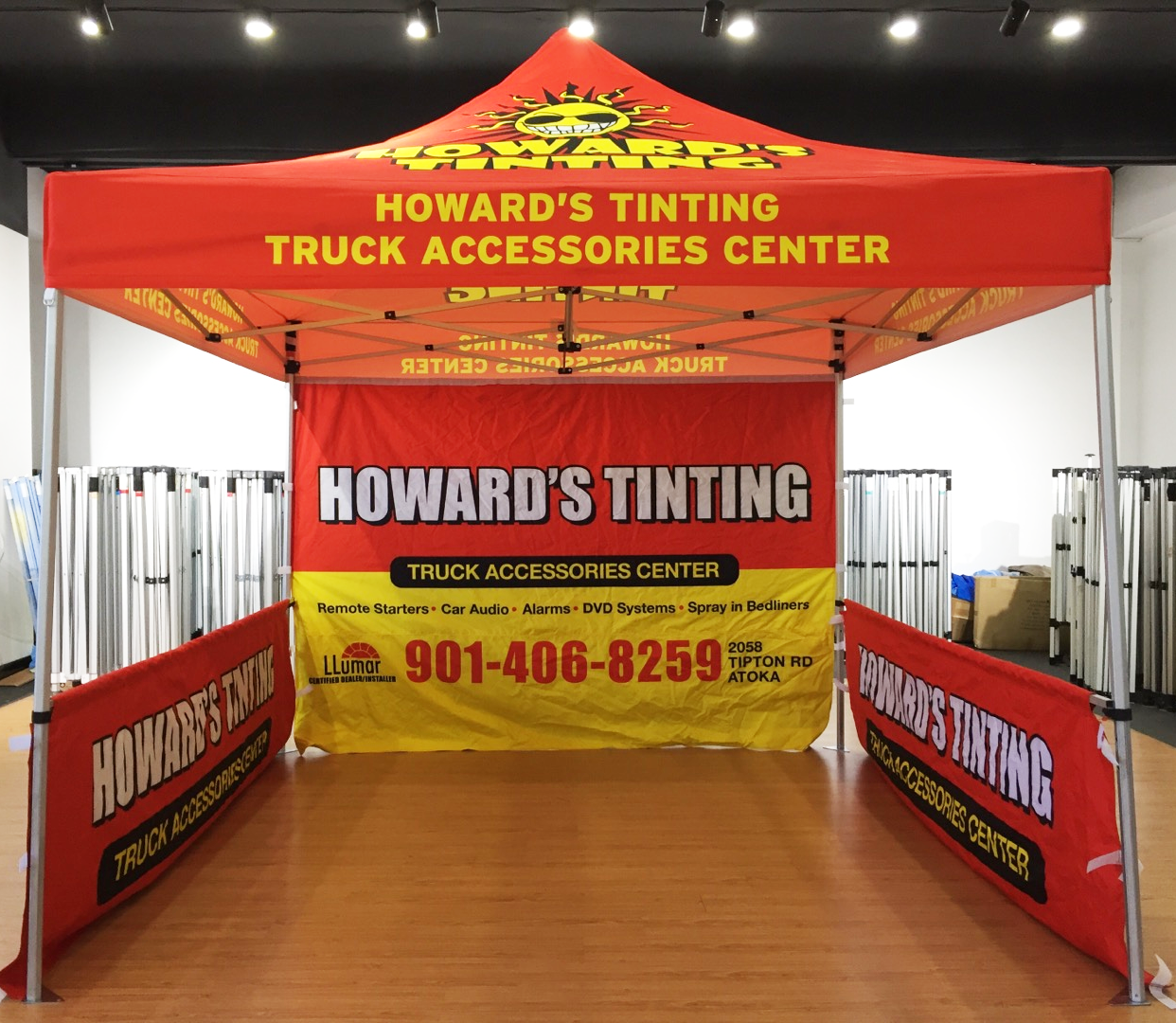 Regardless of your preferred means of vehicle sports, everyone needs accessories.  Whether it’s Moto-cross, Jeep sports, Overlanding or just want the coolest truck out there, it makes no difference in how you want to portray your business.  Use a custom vehicle accessories tent to show your customers, new and returning, what you’re all about.  Have the best and widest range of accessories?  Tell people!  Your potential customers are everywhere you are!  Race day, car show, trade show or even your local community events, let them know you’re a professional.  Use a bright, colorful tent to attract your customers to the best the market has to offer.  Branded with your logo, your contact info will be easily accesible to hundreds of people at one time.  Not to mention its a great place to have a conversation in comfort and shelter from the elements.