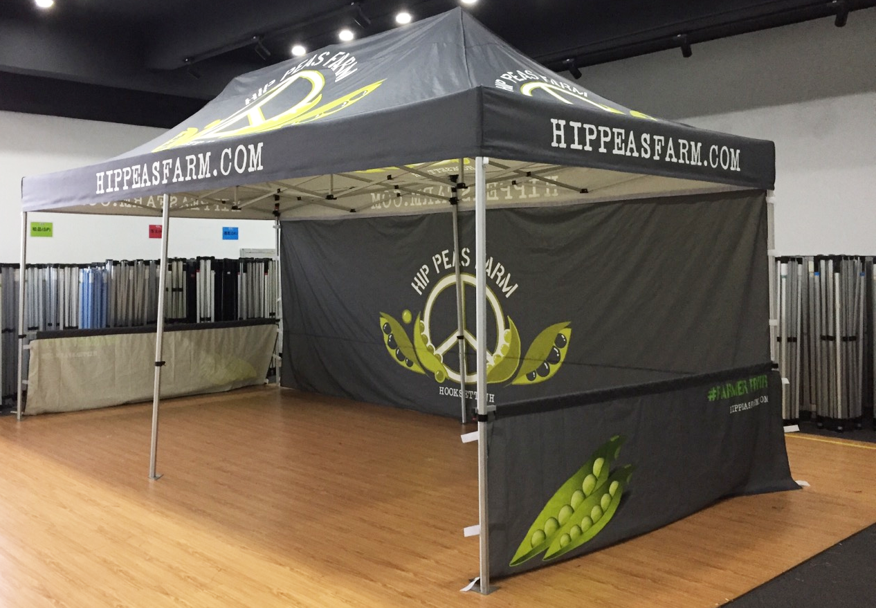 You work hard to grow your fresh fruits and veggies for the Farmer’s Market! How enticing it will be for your customers to browse comfortably under your beautiful custom Farmer’s Market backdrop tent as bright and vibrant as your produce! Use a bright, colorful tent to attract your customers to the best the Market has to offer. Custom 10×10 pop-up canopy tents are a great investment for all small business owners. Branded with your logo, your contact info will be easily accesible to hundreds of people at one time. Not to mention its a great place to have a conversation in comfort and shelter from the elements.