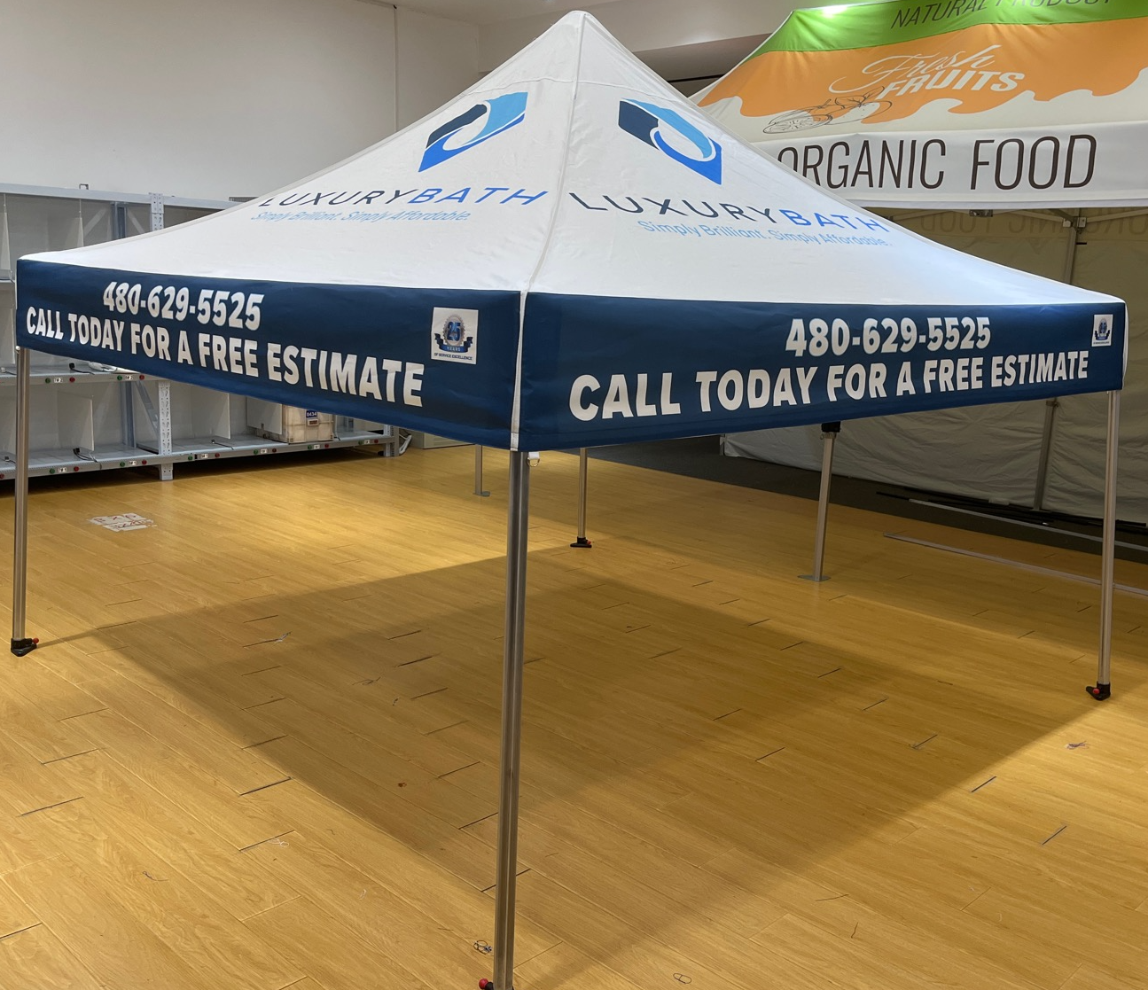 • 10′ x 10′ dye sublimated canopy top