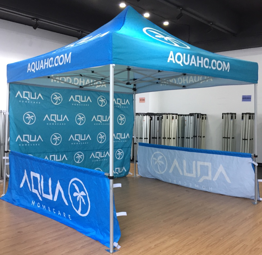 Custom 10×10 tents with a step and repeat backdrop are a great investment for any business, small or large.  It gives your customers a chance to interact with other guests and share their experiences on social media.  That gives you a leg up when it comes to exposure.  Making it fun for your customers & creating a memorable visit to your kiosk or booth.  They can be easily set up and transported to various locations, such as open houses, community events, or trade shows.  Branded with your logo, your contact info will be easily accesible to hundreds of people at one time.  Not to mention its a great place to have a conversation in comfort and shelter from the elements.