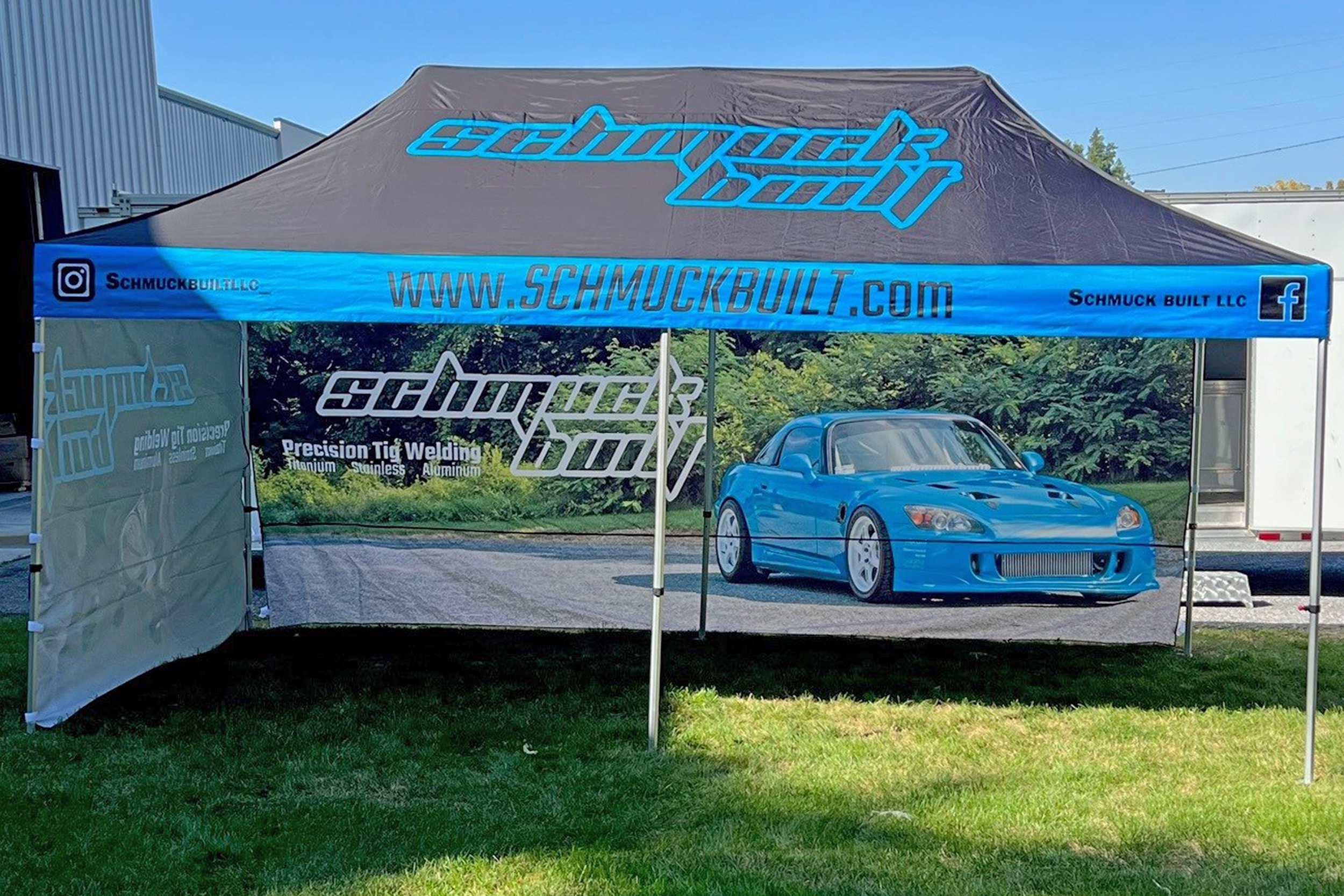 Do you offer vehicle products or services that are unique and cool in the auto, motorcycle or truck world? Not everyone can do what you do, so why not make an impact with your advertising? Our custom tents for unique, one of a kind products or services for vehicle customization and services will fit the bill at any car show, trade show or local event. Whether it is headlight restoration, custom welding, mobile repairs or whatever, use a bright, colorful tent to attract your customers to the best the market has to offer.  Branded with your logo, your contact info will be easily accesible to hundreds of people at one time.  Not to mention its a great place to have a conversation in comfort and shelter from the elements.