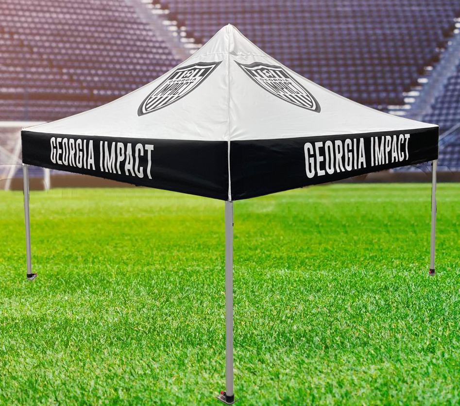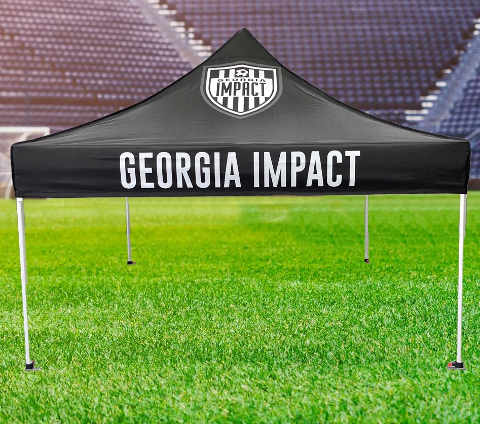 Soccer is likely one of the first sports your kid plays as a youth starting in sports. From the start when they may just be kicking the ball in all directions to pinacle travel soccer the best and most versatile item in your arsenal will be a custom soccer pop-up tent. We spend a lot of time invested in youth sports as parents and a custom soccer pop-up canopy will be a great investment! From showing other teams that you are a serious contender at regular games or in a tournament or just as chance to show off your team pride with logos, colors and even your team sponsors – or attact new sponsors! Your tent will be a great place to gather during a game or during downtime between tournament games. Not to mention it’s a great place for coaches to hold a team meeting in comfort and shelter from the elements. We are sure all players, regardless of age, will be proud to meet in their own special spot. Use a bright, colorful tent to attract your customers to the best the market has to offer. All of that and we design it absolutely free of charge.